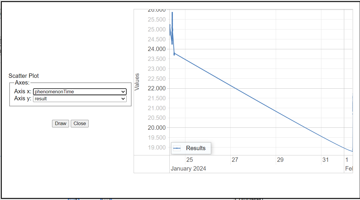Commonly, we are interested in the last observations on the latest observations (possibly the current ones) so we will request them in descending order by using the "Sort By" and specifying that we want to sort by "phenomenonTime" in descending order. We can also change the number of records requested to a bigger number.