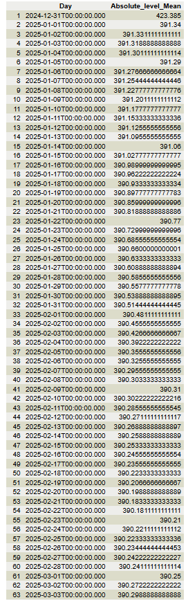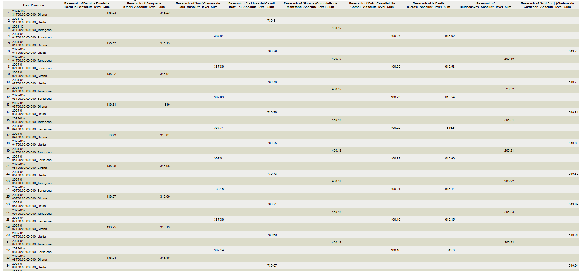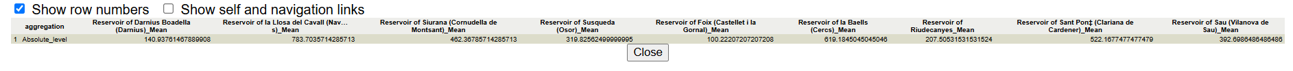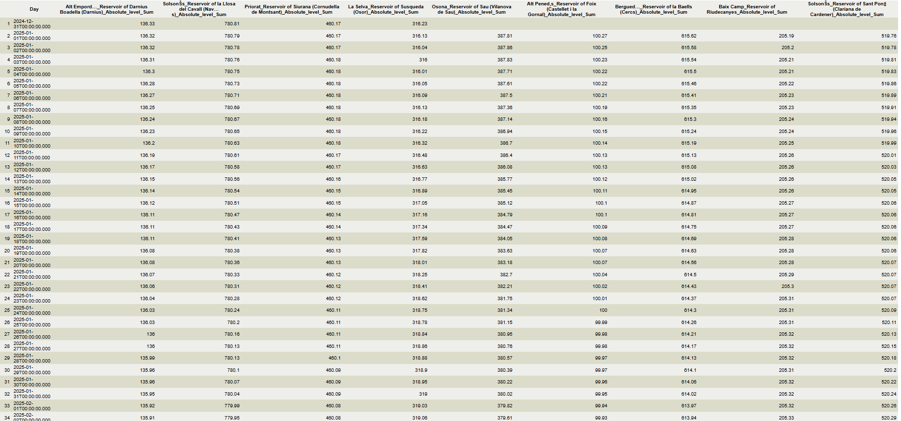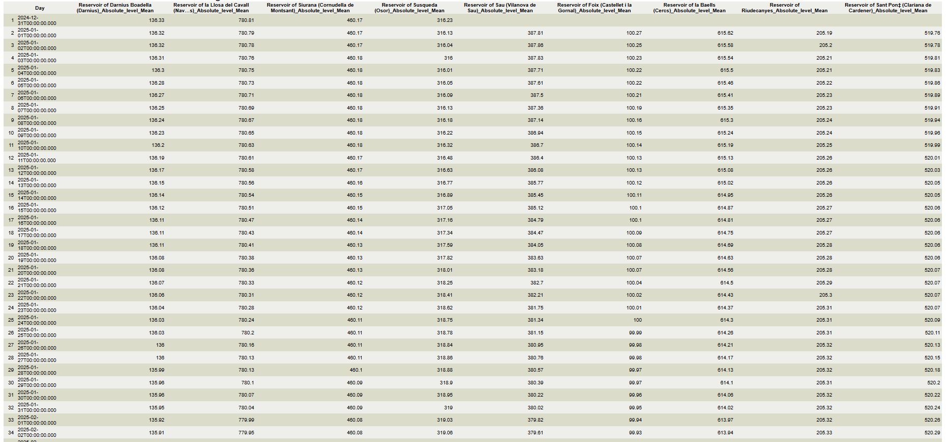 With the data of the resulting table, it is now possible to create a scatterplot graphic of the evolution water level of a one or more reservoirs.
